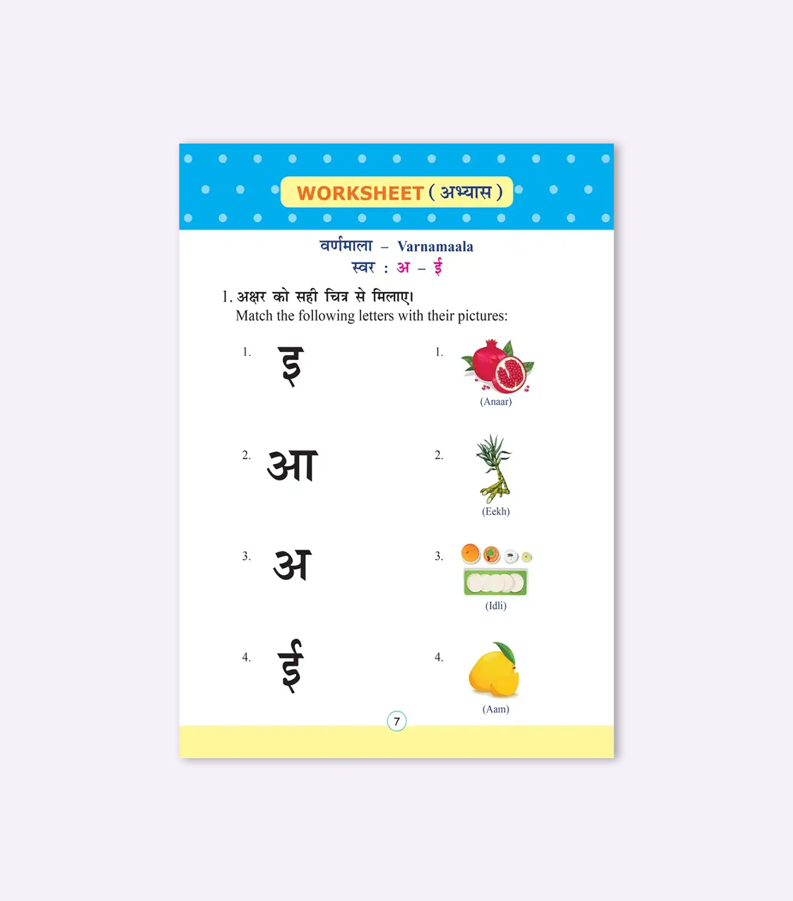 Our Tamil Book I & II (Age 4–5 yrs) and Tamil Payirchi I & II (Age 5–6 yrs) help little learners connect with their roots while building strong reading and writing skills in their mother tongue. For those starting Hindi, our Hindi Lesson Book Varnamala and Hindi Worksheet (Age 5–6 yrs) make learning the language fun, interactive, and easy to grasp. These books not only promote communication but also instill cultural pride and confidence in young learners.