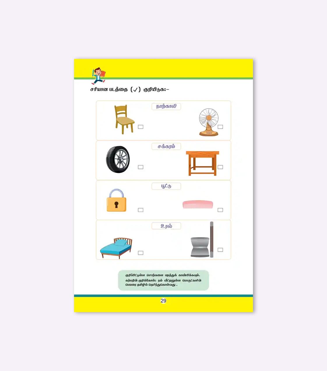 Our Tamil Book I & II (Age 4–5 yrs) and Tamil Payirchi I & II (Age 5–6 yrs) help little learners connect with their roots while building strong reading and writing skills in their mother tongue. For those starting Hindi, our Hindi Lesson Book Varnamala and Hindi Worksheet (Age 5–6 yrs) make learning the language fun, interactive, and easy to grasp. These books not only promote communication but also instill cultural pride and confidence in young learners.