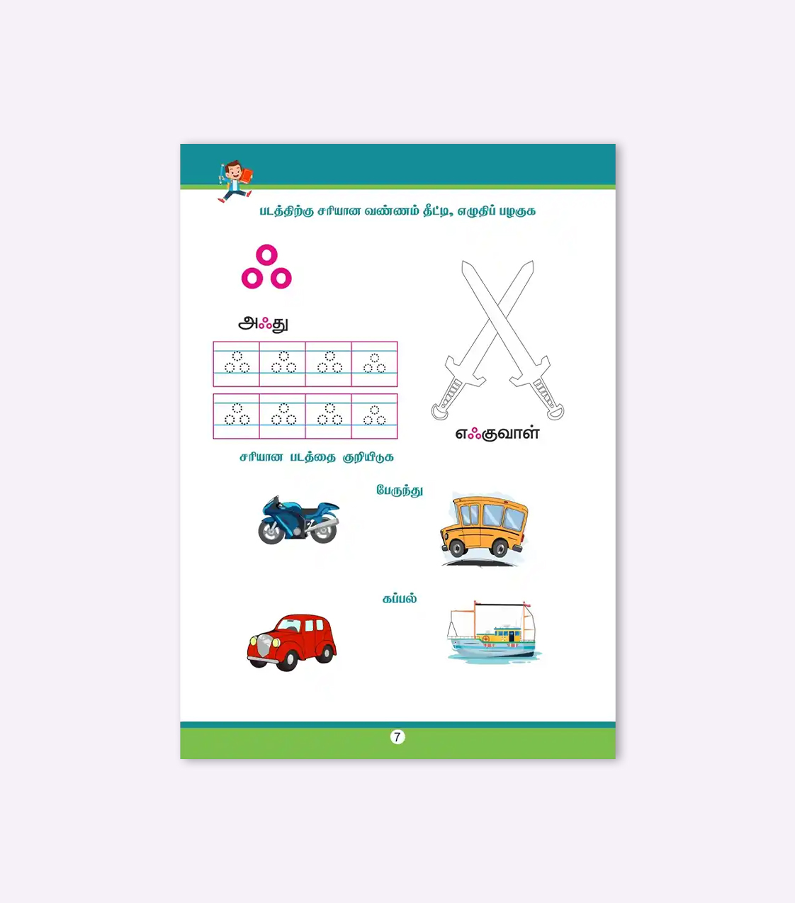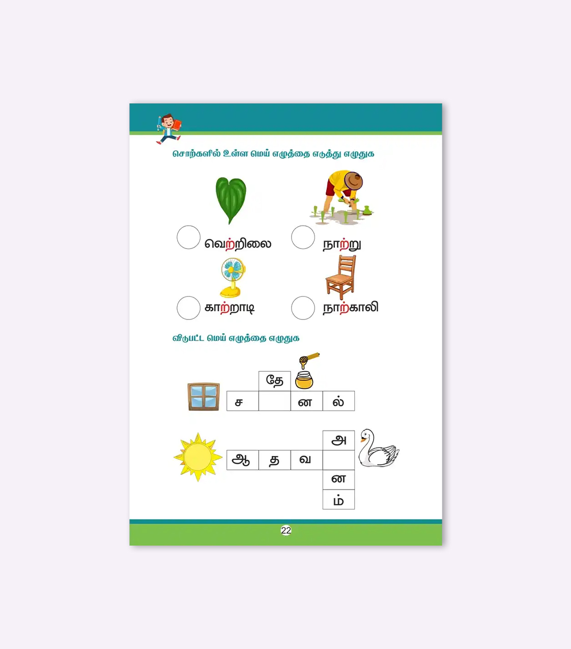 Our Tamil Book I & II (Age 4–5 yrs) and Tamil Payirchi I & II (Age 5–6 yrs) help little learners connect with their roots while building strong reading and writing skills in their mother tongue. For those starting Hindi, our Hindi Lesson Book Varnamala and Hindi Worksheet (Age 5–6 yrs) make learning the language fun, interactive, and easy to grasp. These books not only promote communication but also instill cultural pride and confidence in young learners.